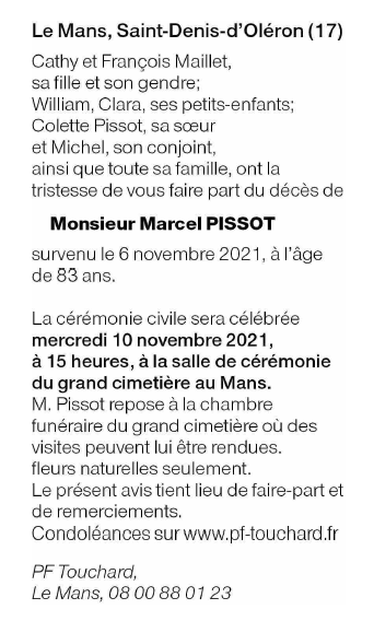 Décédé à Rochefort (17300, France) le samedi 6 novembre 2021 à l'âge de 83 ans