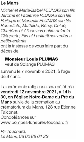 Décédé à Le Mans (72000, France) le dimanche 7 novembre 2021 à l'âge de 87 ans