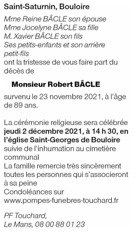 Décédé à Le Mans (72000, France) le mardi 23 novembre 2021 à l'âge de 89 ans