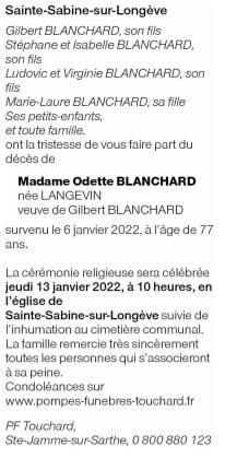 Veuve de Monsieur Gilbert Marcel BLANCHARD