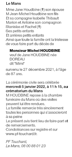 Décédé à Le Mans (72000, France) le lundi 27 décembre 2021 à l'âge de 87 ans