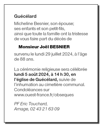 Décédé à Le Mans (72000, France) le lundi 29 juillet 2024 à l'âge de 88 ans