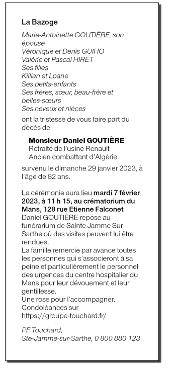 Décédé à Le Mans (72000, France) le dimanche 29 janvier 2023 à l'âge de 82 ans