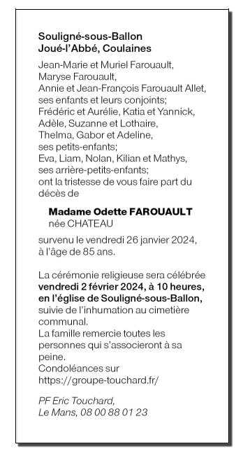 Epouse de Monsieur Raymond Emile Roland FAROUAULT