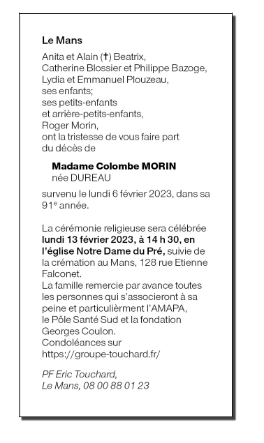 Madame Colombe MORIN née DUREAU
