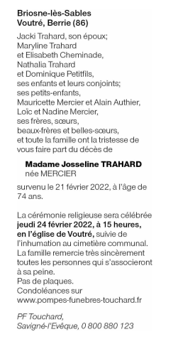 Madame Josseline TRAHARD née MERCIER
