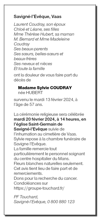 Madame Sylvie Christine COUDRAY née HUBERT