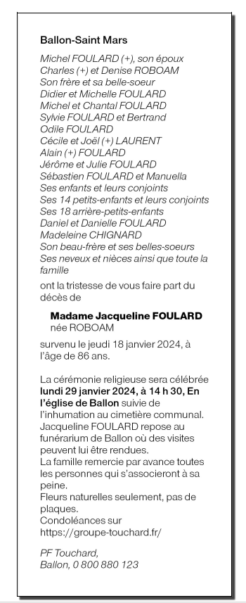 Madame Jacqueline Germaine Adrienne FOULARD née ROBOAM